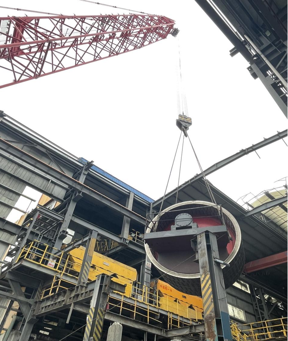 現(xiàn)場(chǎng)強(qiáng)磁機(jī)共3臺(tái),最大單體配件重量為81噸,最遠(yuǎn)吊裝半徑大達(dá)28米,全部安裝在老廠房?jī)?nèi),吊裝精度要求高,如何保證設(shè)備構(gòu)件在吊裝時(shí)不發(fā)生扭曲變形是工程的重點(diǎn)、難點(diǎn)。整個(gè)吊裝過程中,項(xiàng)目團(tuán)隊(duì)通力合作,精心策劃,科學(xué)組織,合理安排,3臺(tái)強(qiáng)磁選機(jī)吊裝的順利完成,為后續(xù)安裝工作打下了堅(jiān)實(shí)基礎(chǔ)。