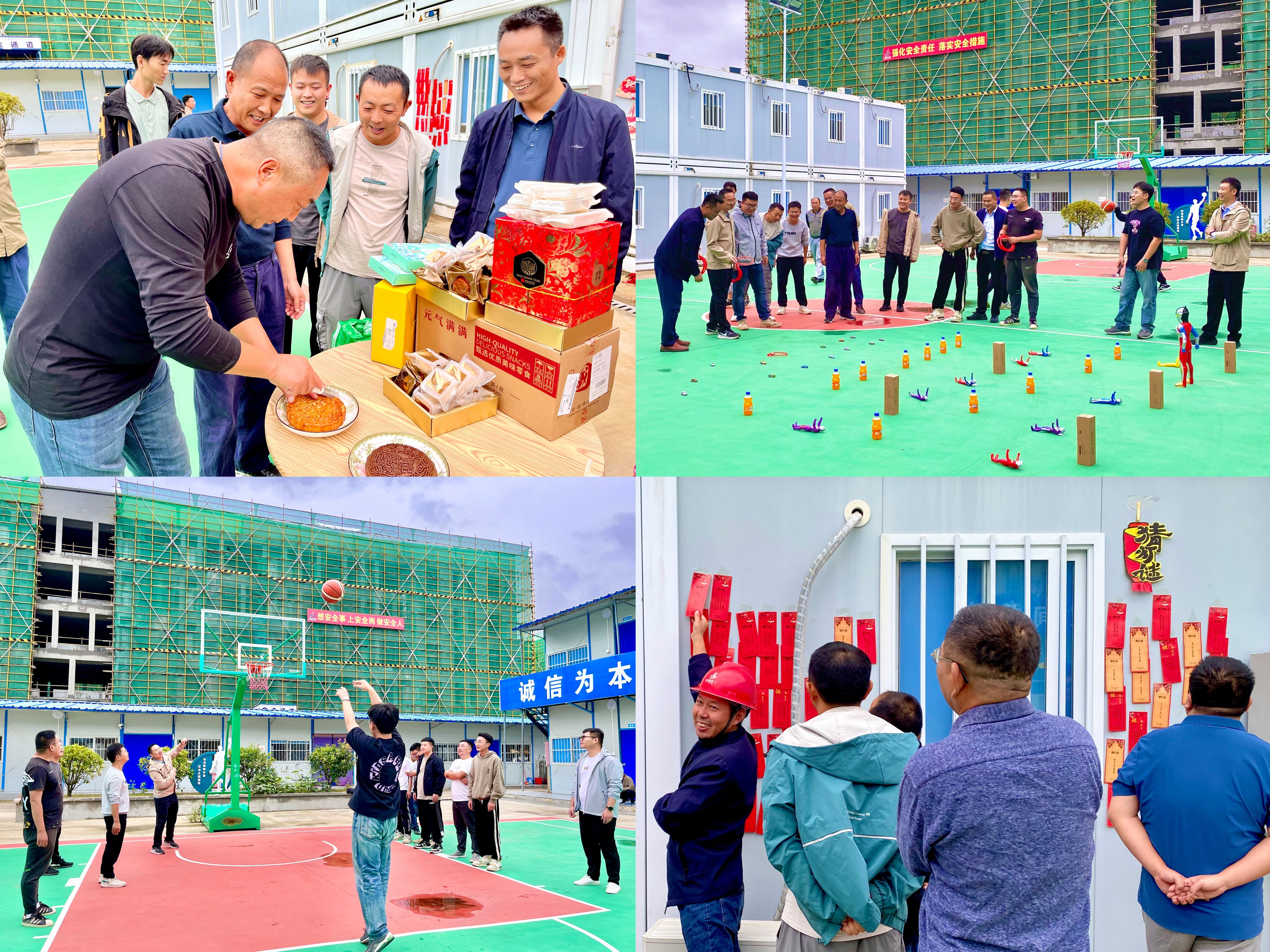 節(jié)前,分公司工會還前往岳西中學(xué)建設(shè)項(xiàng)目(一期)安裝專業(yè)分包工程項(xiàng)目部開展了雙節(jié)慶祝活動(dòng)。在項(xiàng)目現(xiàn)場,大家共同分享團(tuán)圓大月餅,一起品嘗節(jié)日“美味”,組織開展猜燈謎、趣味套圈、定點(diǎn)投籃等游戲活動(dòng),設(shè)置“投籃最佳射手”等獎(jiǎng)項(xiàng)。項(xiàng)目部人員熱情踴躍參加,場面熱鬧非凡,爽朗的笑聲回蕩在整個(gè)項(xiàng)目現(xiàn)場,在工作之余愉悅身心,緩解工作壓力,同時(shí)也增進(jìn)大家之間的溝通交流,進(jìn)一步增強(qiáng)團(tuán)隊(duì)合作精神和企業(yè)凝聚力、向心力。