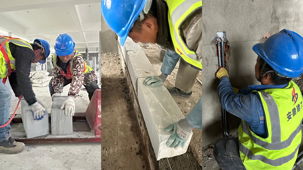 圖為:安徽理工大學(xué)(合肥高等研究院)維修改造項(xiàng)目(二期)室內(nèi)砌筑材料搬運(yùn)、新增隔墻砌筑及水電管線預(yù)埋施工