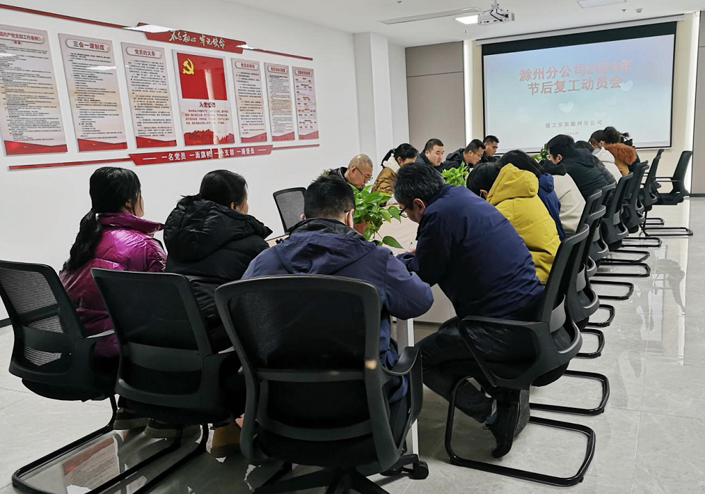為認(rèn)真貫徹落實(shí)集團(tuán)、公司《關(guān)于加強(qiáng)節(jié)后復(fù)工復(fù)產(chǎn)安全生產(chǎn)工作的通知》相關(guān)要求,平穩(wěn)推進(jìn)節(jié)后復(fù)工復(fù)產(chǎn)各項(xiàng)工作。2月26日下午,建工安裝滁州分公司召開2024年節(jié)后復(fù)工復(fù)產(chǎn)動(dòng)員會(huì),會(huì)議由分公司經(jīng)理、黨支部副書記黃彥濤主持,分公司領(lǐng)導(dǎo)班子成員、機(jī)關(guān)全體員工參加會(huì)議。
