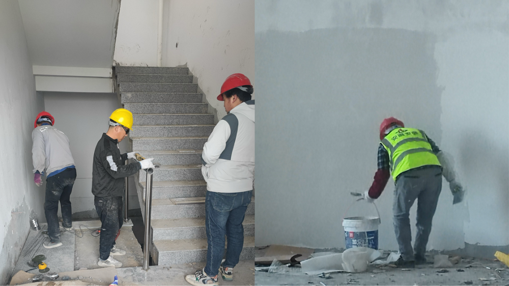 (圖為安裝欄桿、粉刷墻面)