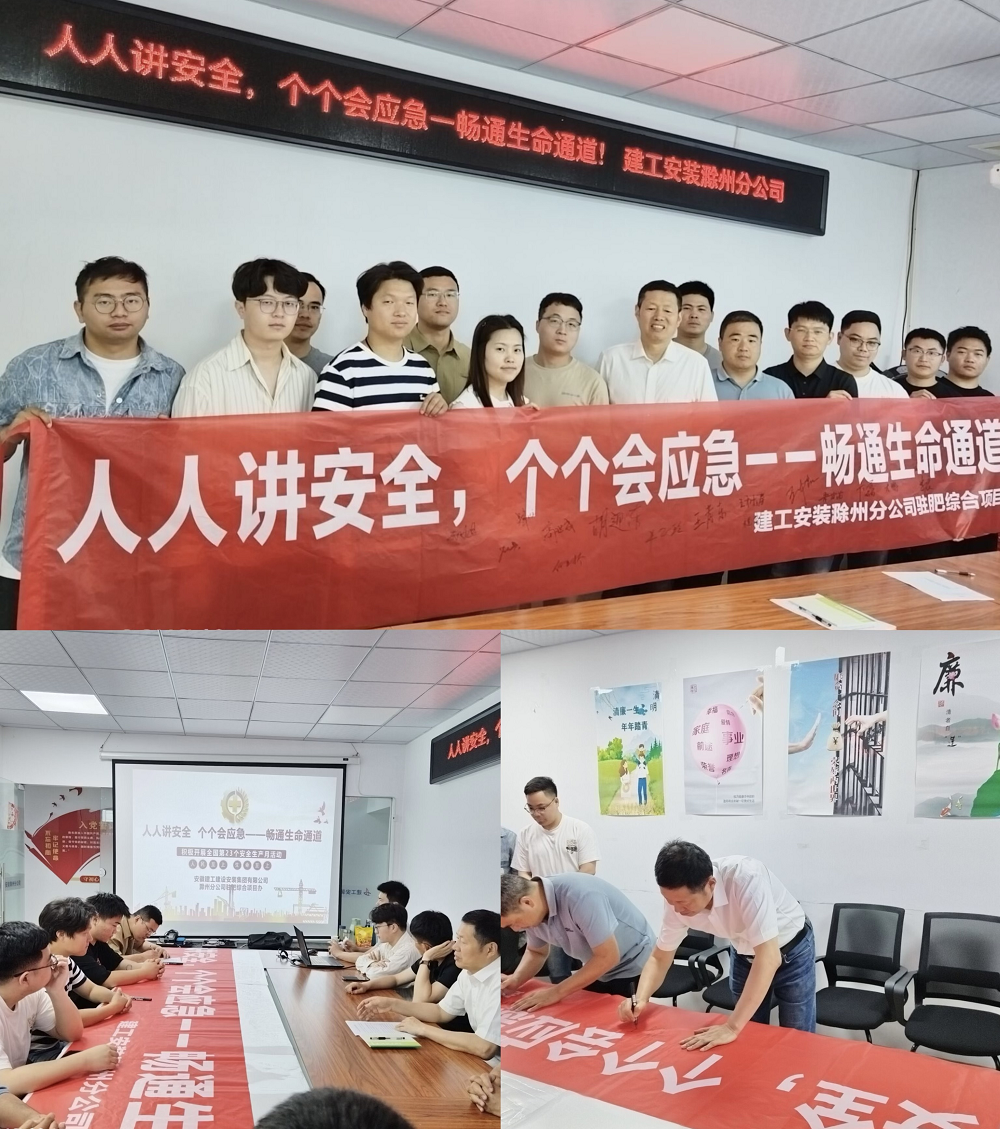 2024年6月是全國第23個(gè)安全生產(chǎn)月。5月31日上午,建工安裝滁州分公司、新能源分公司圍繞“安全生產(chǎn)月”主題“人人講安全、個(gè)個(gè)會(huì)應(yīng)急——暢通生命通道”聯(lián)合舉行了2024年“安全生產(chǎn)月”活動(dòng)啟動(dòng)儀式。滁州分公司、新能源分公司領(lǐng)導(dǎo)班子及分公司全體成員參加了啟動(dòng)儀式,儀式由滁州分公司副經(jīng)理張漢軍主持。