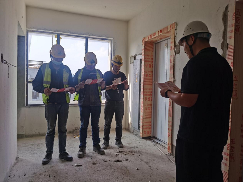 廬陽區(qū)清瀾苑項目現(xiàn)場安裝人員正在進行每日安全教育