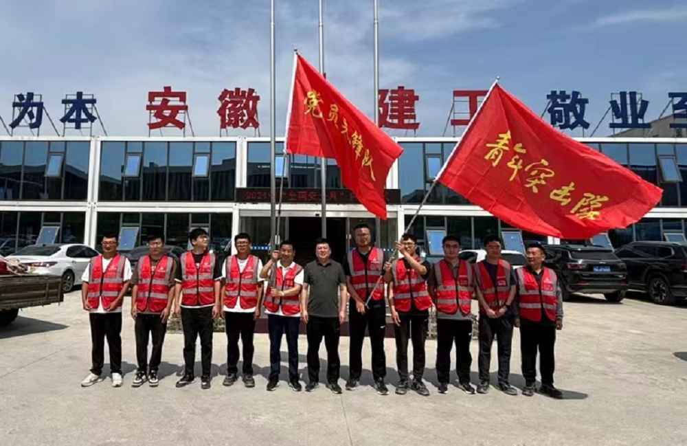 為引導(dǎo)、鼓勵(lì)項(xiàng)目以黨員先鋒隊(duì)為榜樣,以青年突擊隊(duì)為標(biāo)桿,充分發(fā)揮項(xiàng)目一線基層黨組織戰(zhàn)斗堡壘作用和青年人在工程建設(shè)中的生力軍的作用,推動(dòng)黨、團(tuán)組織建設(shè)全面覆蓋全面過硬,蚌埠分公司黨支部和團(tuán)支部先后在蚌埠污水處理廠項(xiàng)目部及宿州深巖化工項(xiàng)目部舉行了“黨員先鋒隊(duì)”、“青年突擊隊(duì)”授旗儀式。
