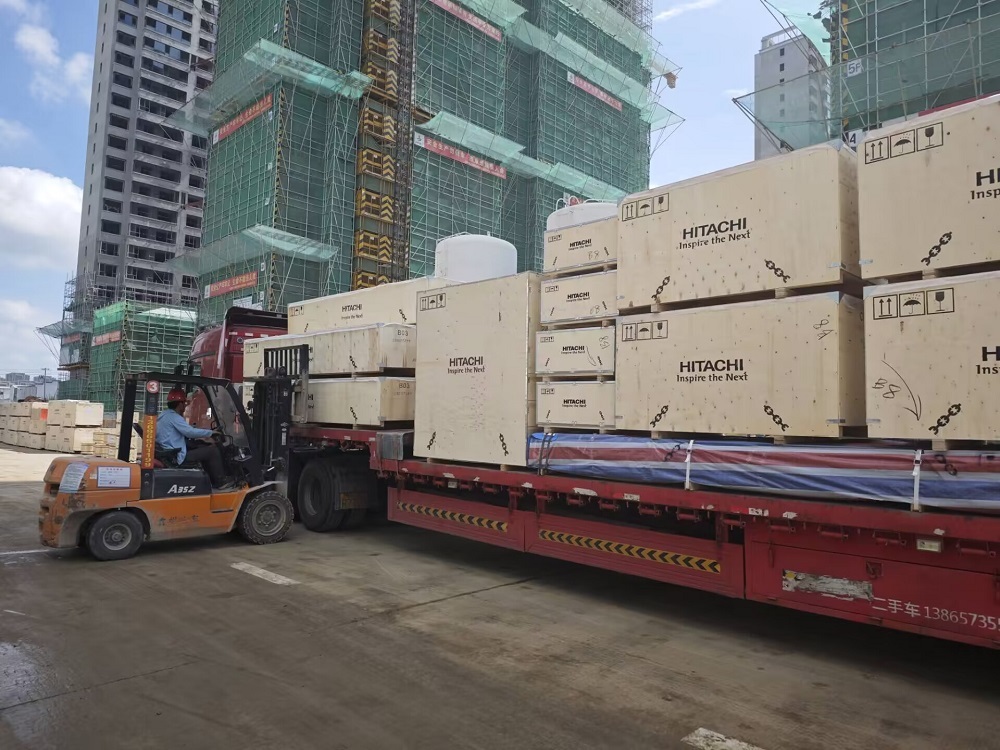 現(xiàn)場施工人員正在卸貨