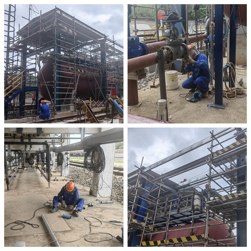 安慶石化新增鐵路接卸純苯設(shè)施項(xiàng)目正在穩(wěn)步推進(jìn)。目前,已拆除舊鶴管6臺并安裝新鶴管6臺,緩沖罐、污油罐、苯卸車泵也已安裝完畢,現(xiàn)進(jìn)行泵棚鋼結(jié)構(gòu)屋面彩鋼瓦和設(shè)備安裝工作。該項(xiàng)目總體進(jìn)度達(dá)80%,其中鐵路施工已結(jié)束并通過驗(yàn)收交于業(yè)主使用,剩余電氣設(shè)備、工藝管線等施工計(jì)劃于10月完成項(xiàng)目中交。