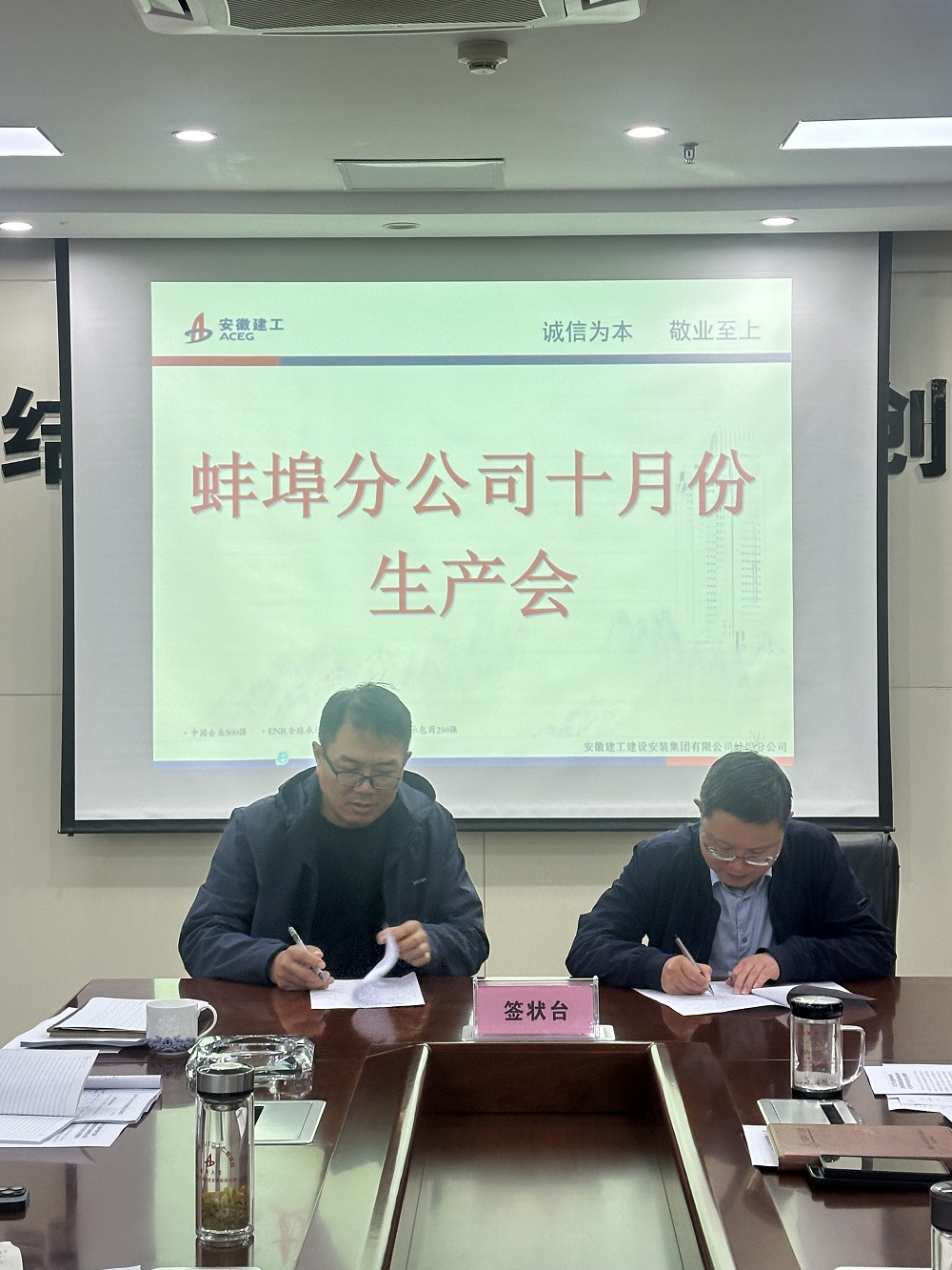 11月1日上午,蚌埠分公司組織召開10月份生產(chǎn)經(jīng)營調(diào)度會,分公司領(lǐng)導(dǎo)班子成員、所屬各項目部、機關(guān)各部門負(fù)責(zé)人及工程管理部全體員工參加會議,會議由分公司副經(jīng)理張斌主持。