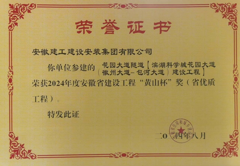 近日,安徽省住房和城鄉(xiāng)建設廳公布了2024年度安徽省建設工程“黃山杯”獲獎項目名單,建工安裝合肥分公司濱湖科學城花園大道(徽州大道-包河大道)建設工程項目榮獲“黃山杯”獎項,這是本項目繼榮獲華東優(yōu)質安裝工程獎之后的又一重量級獎項。