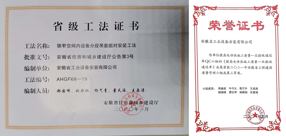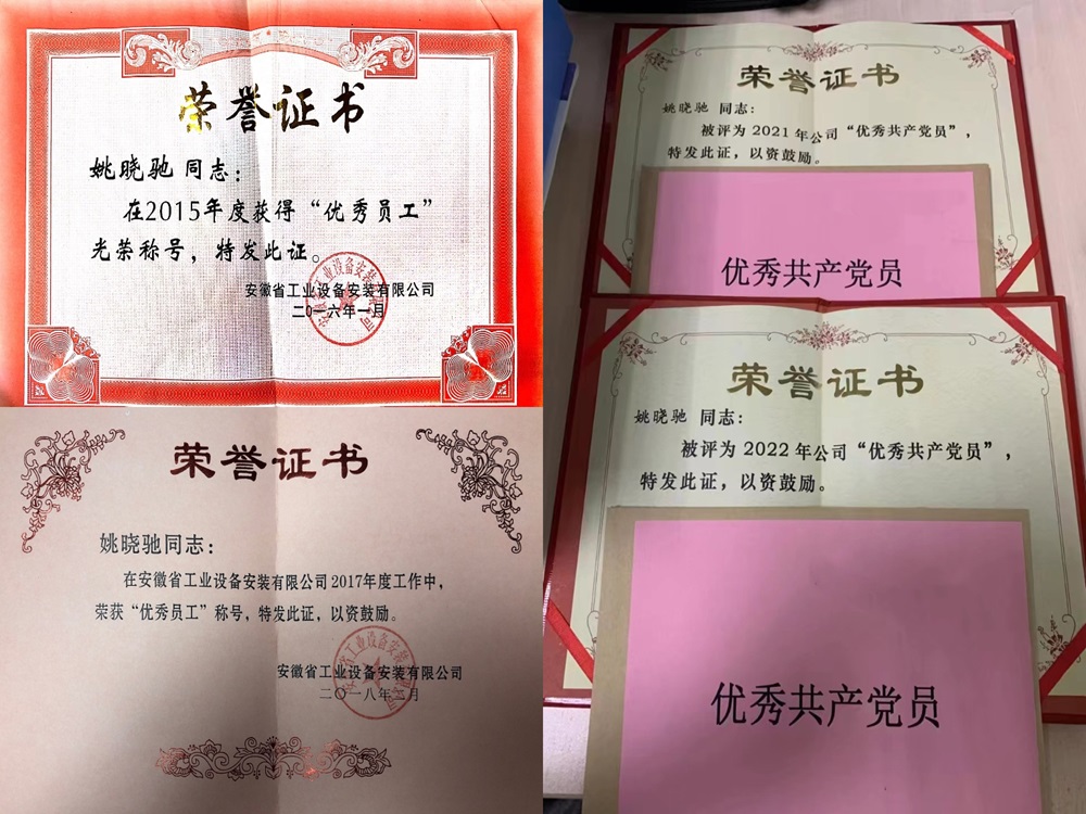 在繁忙的工作之余,姚曉馳對專業(yè)知識的探索與熱愛從未有片刻停歇。他仿若一位求知若渴的行者,積極主動地在知識的海洋中破浪前行,持續(xù)拓寬并深化自身的知識體系。他參與研發(fā)的《狹窄空間內(nèi)設(shè)備分段吊裝組對安裝工法》成功榮獲安徽省住房和城鄉(xiāng)建設(shè)廳頒發(fā)的省級工法稱號,《提高電伴熱施工質(zhì)量一次驗(yàn)收通過率》也榮獲了安徽省工程建設(shè)質(zhì)量管理小組成果三等獎。