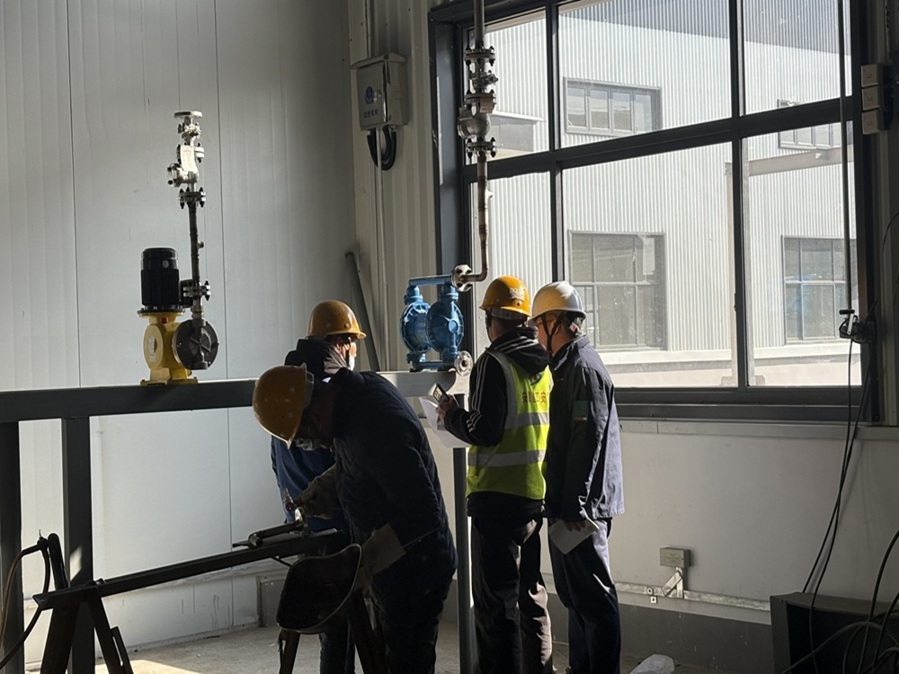 施工人員正在進(jìn)行圖紙核對(duì)及管道焊接