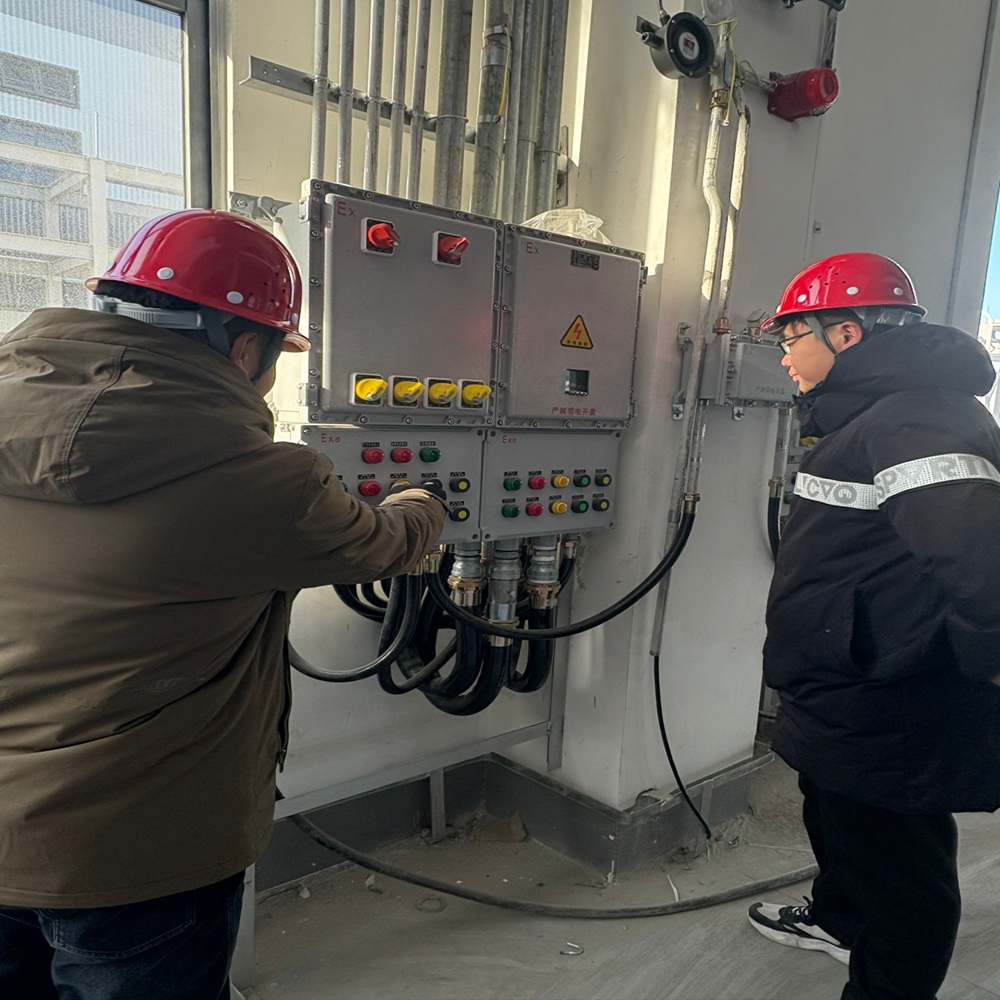 施工員正在檢查電箱