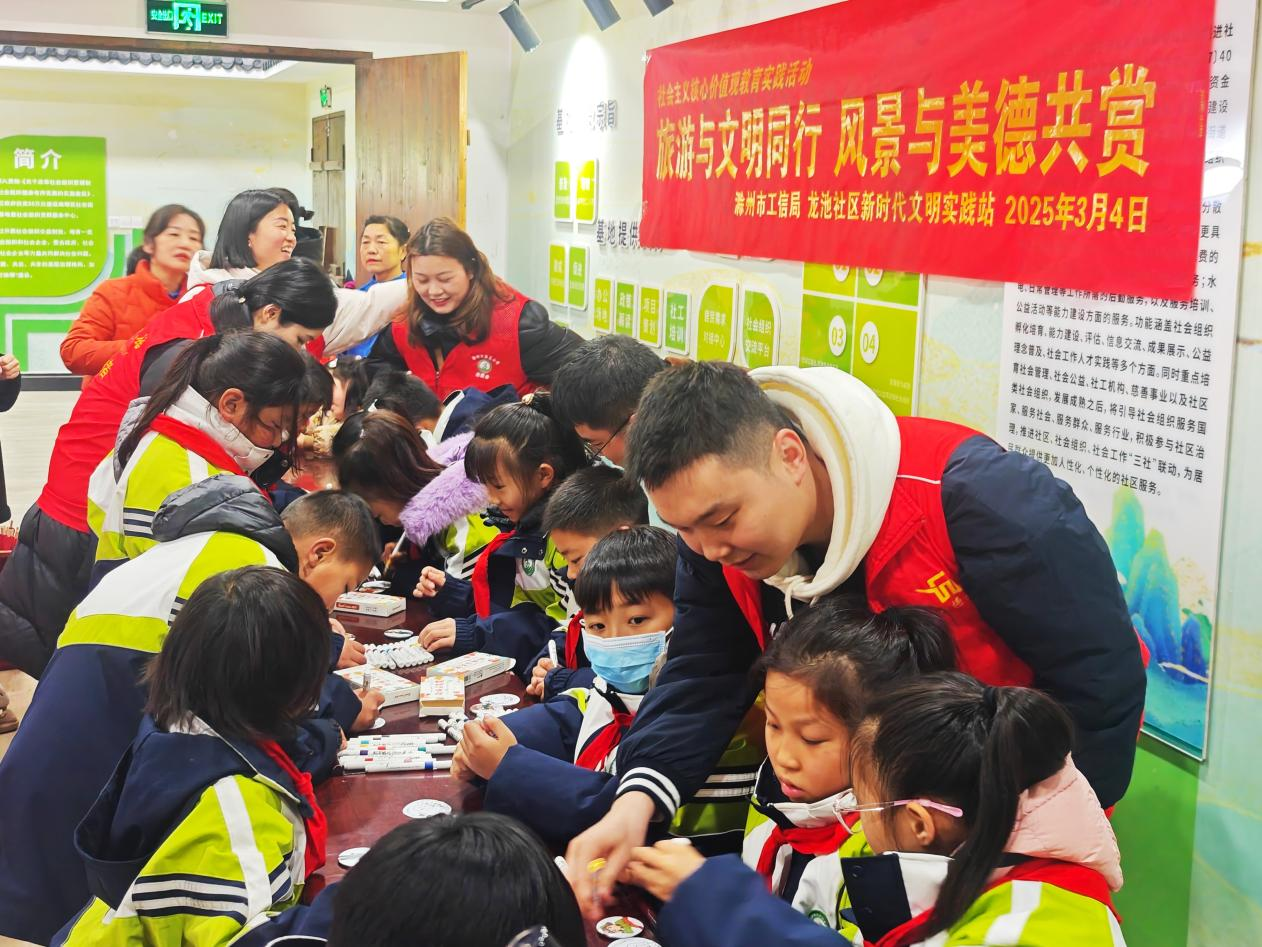 在活動(dòng)現(xiàn)場(chǎng),團(tuán)員青年們化身“志愿導(dǎo)師”,帶領(lǐng)15名小學(xué)生共同制作“雷鋒紀(jì)念徽章”,小朋友們充分發(fā)揮想象力,努力描繪出自己心中的雷鋒,興高采烈地開(kāi)始了DIY雷鋒主題徽章的制作。從繪制、涂色到壓版,青年志愿者們一邊手把手指導(dǎo)孩子們完成徽章創(chuàng)作,一邊講述雷鋒同志助人為樂(lè)、無(wú)私奉獻(xiàn)的感人故事。一枚枚印有“向雷鋒同志學(xué)習(xí)”“紀(jì)念雷鋒”等字樣的徽章,在孩子們的巧手中誕生,成為傳承雷鋒精神的生動(dòng)載體,也在小朋友們心間種下了“雷鋒精神”的種子?!拔乙窭卒h叔叔一樣,多幫助同學(xué)!”一名小朋友佩戴著親手制作的徽章,堅(jiān)定地說(shuō)道。