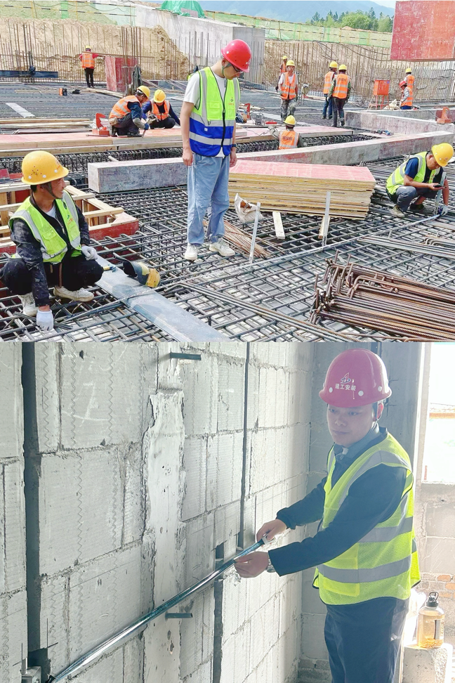圖為涇青高速房建項(xiàng)目水電安裝專(zhuān)業(yè)分包工程項(xiàng)目基礎(chǔ)接地施工、插座點(diǎn)位復(fù)核