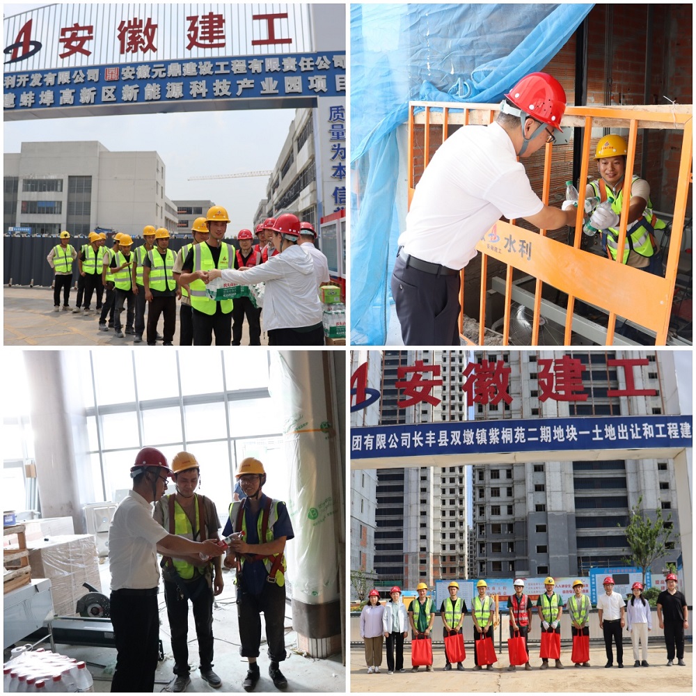 此次活動(dòng)由電梯公司領(lǐng)導(dǎo)班子成員帶隊(duì),先后深入蚌埠高新區(qū)新能源科技產(chǎn)業(yè)園EPC項(xiàng)目、長(zhǎng)豐縣雙墩鎮(zhèn)紫桐苑項(xiàng)目、匯金商務(wù)中心S1#樓室內(nèi)裝修設(shè)計(jì)施工項(xiàng)目、潭沖河家園E地塊EPC總承包項(xiàng)目等多個(gè)電梯安裝施工現(xiàn)場(chǎng)進(jìn)行走訪慰問(wèn),感謝大家在高溫下堅(jiān)守崗位,并將礦泉水、綠茶、人丹、藿香正氣水、風(fēng)油精、毛巾等防暑降溫用品一一送到職工手中。每到一個(gè)項(xiàng)目,慰問(wèn)組都詳細(xì)了解項(xiàng)目進(jìn)展以及員工生產(chǎn)生活情況,認(rèn)真傾聽(tīng)一線員工的心聲,著重強(qiáng)調(diào)安全生產(chǎn)工作,叮囑項(xiàng)目部高溫天氣要做好防暑降溫措施,合理安排高溫工作時(shí)間,做好高溫下作業(yè)人員防護(hù),時(shí)刻把安全生產(chǎn)牢記于心,全力保障員工的健康和安全。
