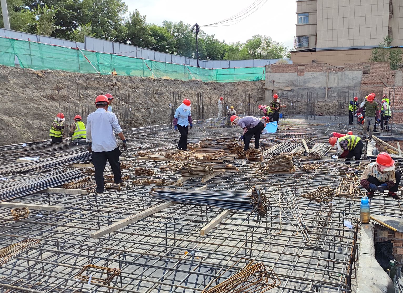 盛夏七月,熱浪襲人,建工安裝新疆烏蘇南苑項目部全體成員鉚足干勁、火力全開,奮戰(zhàn)在項目一線。該項目新建兩棟主樓,目前處于筏板基礎(chǔ)鋼筋綁扎。