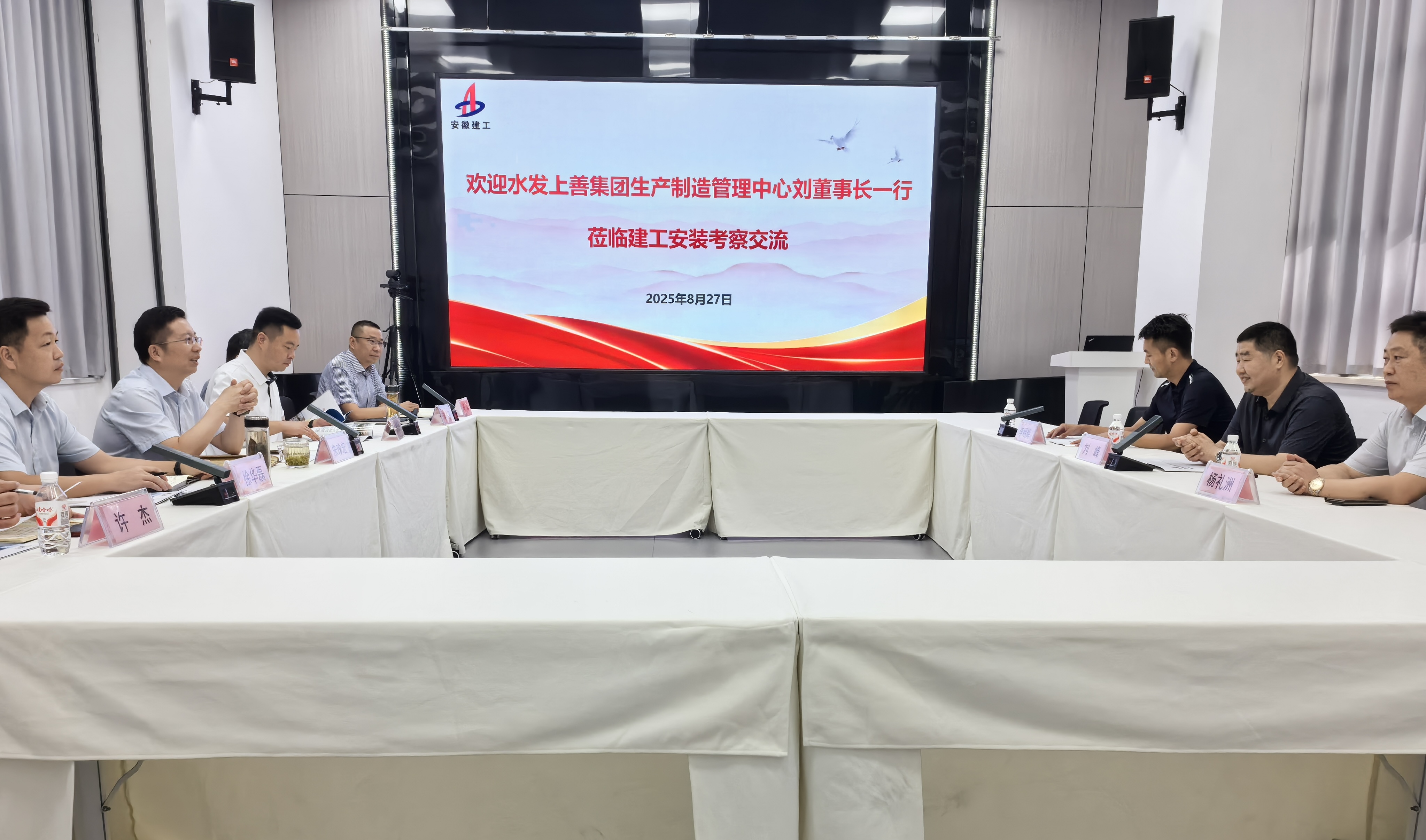 建工安裝黨委委員、副總經(jīng)理劉曉剛、徐華磊,黨委委員、財務總監(jiān)李雷,山東沃特管業(yè)股份有限公司副總經(jīng)理李明輝,以及雙方相關(guān)單位和部門負責人參加交流活動。