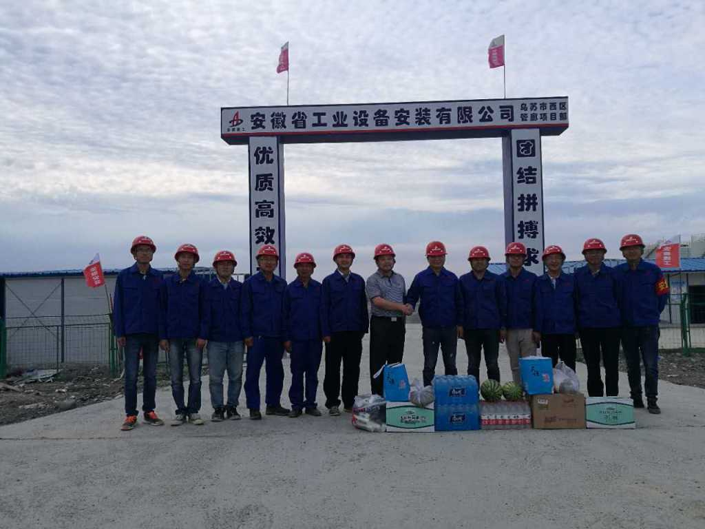 近日,公司董事長、總經(jīng)理王軍邦在總經(jīng)理助理、西北分公司經(jīng)理王軍的陪同下前往新疆凱賽烏蘇市西區(qū)管廊項(xiàng)目開展“夏日送清涼”活動,為一線員工送上礦泉書、毛巾、綠豆、白糖、清涼油等防暑降溫用品。