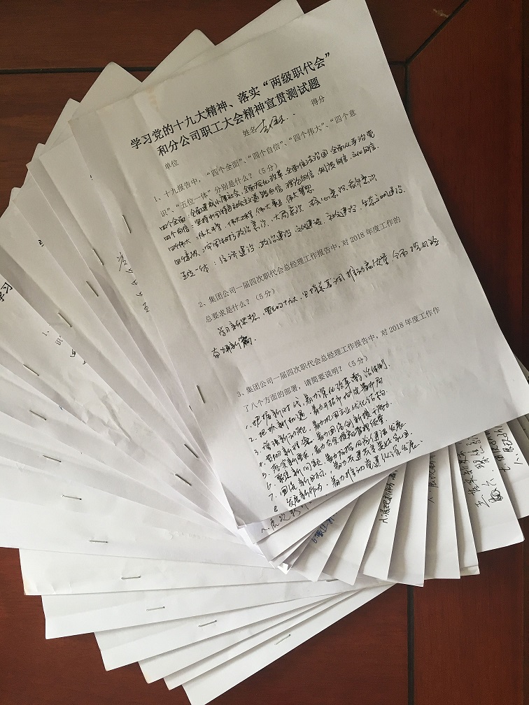會(huì)上,還對(duì)參加學(xué)習(xí)的同志進(jìn)行了隨堂考試。