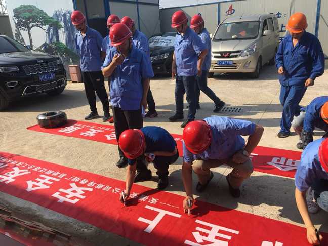 啟動(dòng)儀式最后,現(xiàn)場(chǎng)全體人員在安全生產(chǎn)月條幅上鄭重簽名承諾。分公司機(jī)關(guān)也同期舉行了簽名活動(dòng)。