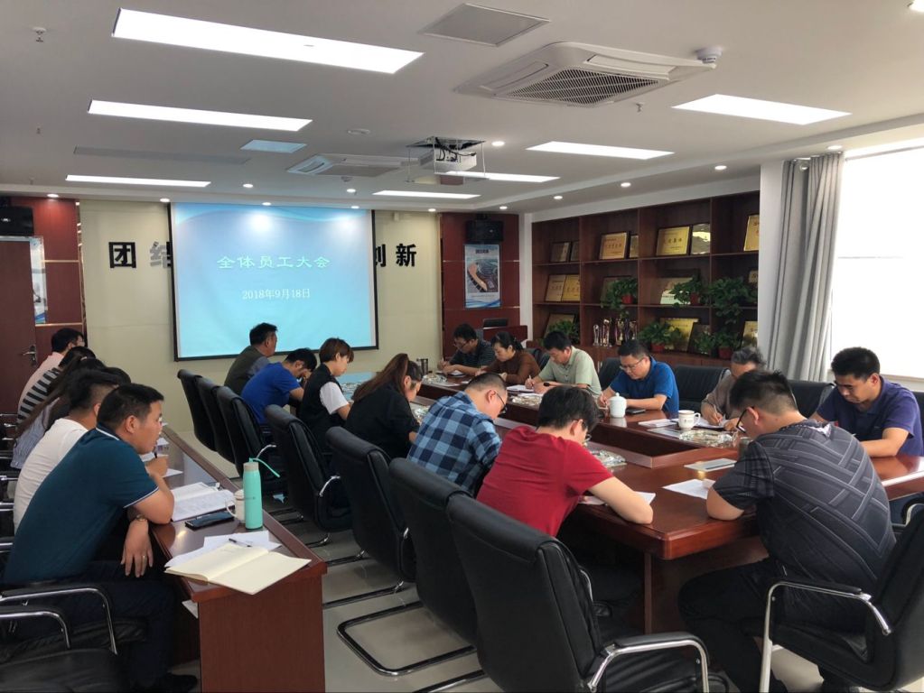 9月18日上午,蚌埠分公司召開全體員工大會宣貫公司黨委書記、董事長胡六中在公司中層以上管理人員會議上的講話精神,會議由分公司黨支部書記洪軍主持。