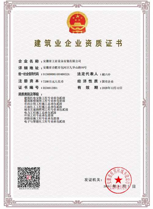 此次資質(zhì)升級(jí)工作,經(jīng)營(yíng)公司在領(lǐng)導(dǎo)的帶領(lǐng)指導(dǎo)和各部門的協(xié)調(diào)配合下,通力合作,經(jīng)過一個(gè)月與安徽省住房和城鄉(xiāng)建設(shè)廳的對(duì)接、溝通及資料的傳遞,獲得碩果。這標(biāo)志著公司資質(zhì)等級(jí)又上新臺(tái)階,為公司的持續(xù)發(fā)展奠定了堅(jiān)實(shí)的基礎(chǔ),是公司發(fā)展史上的又一里程碑。截至目前,公司工程施工資質(zhì)業(yè)務(wù)范圍增加為兩個(gè)總承包壹級(jí)資質(zhì)(機(jī)電工程施工總承包壹級(jí)、建筑工程施工總承包壹級(jí))和四個(gè)專業(yè)承包壹級(jí)資質(zhì)(消防設(shè)施工程專業(yè)承包壹級(jí)、建筑裝修裝飾工程專業(yè)承包壹級(jí)、鋼結(jié)構(gòu)工程專業(yè)承包壹級(jí)、環(huán)保工程專業(yè)承包壹級(jí))。