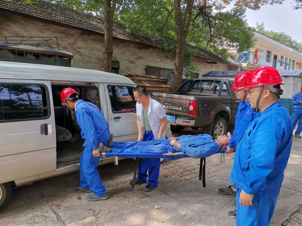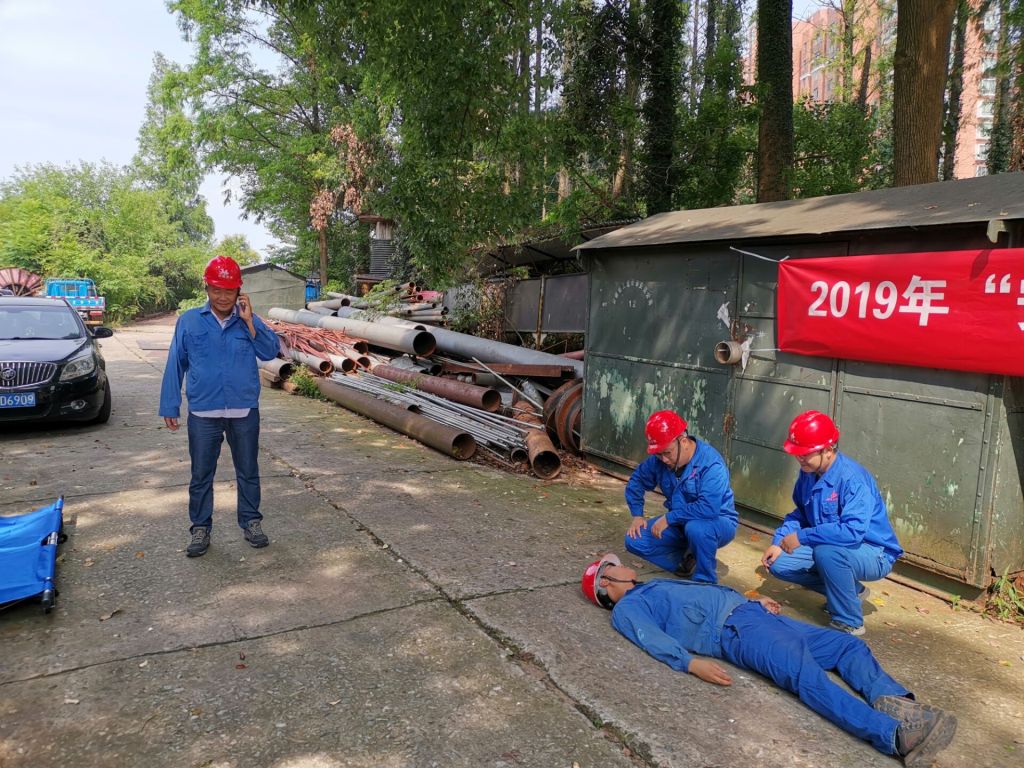下午2點,隨著現(xiàn)場警報器長笛示警,應(yīng)急救援演練拉開了序幕。施工班組負(fù)責(zé)人命令現(xiàn)場立即停止作業(yè),所有施工人員撤離出吊裝現(xiàn)場,并立即撥打120急救電話報告現(xiàn)場安全員。在接到通知后,項目部立即啟動應(yīng)急預(yù)案,并組織各小組進(jìn)行救援。警戒組封鎖事故現(xiàn)場,維持現(xiàn)場秩序;醫(yī)療救護(hù)組對傷員進(jìn)行了簡單的救治和護(hù)理;疏散組負(fù)責(zé)對現(xiàn)場與救援無關(guān)人員進(jìn)行疏散,防止事態(tài)擴大。各組各司其職,演練現(xiàn)場井然有序,最后救護(hù)車輛和醫(yī)療人員趕到現(xiàn)場,將傷員送往醫(yī)院,演練活動結(jié)束。