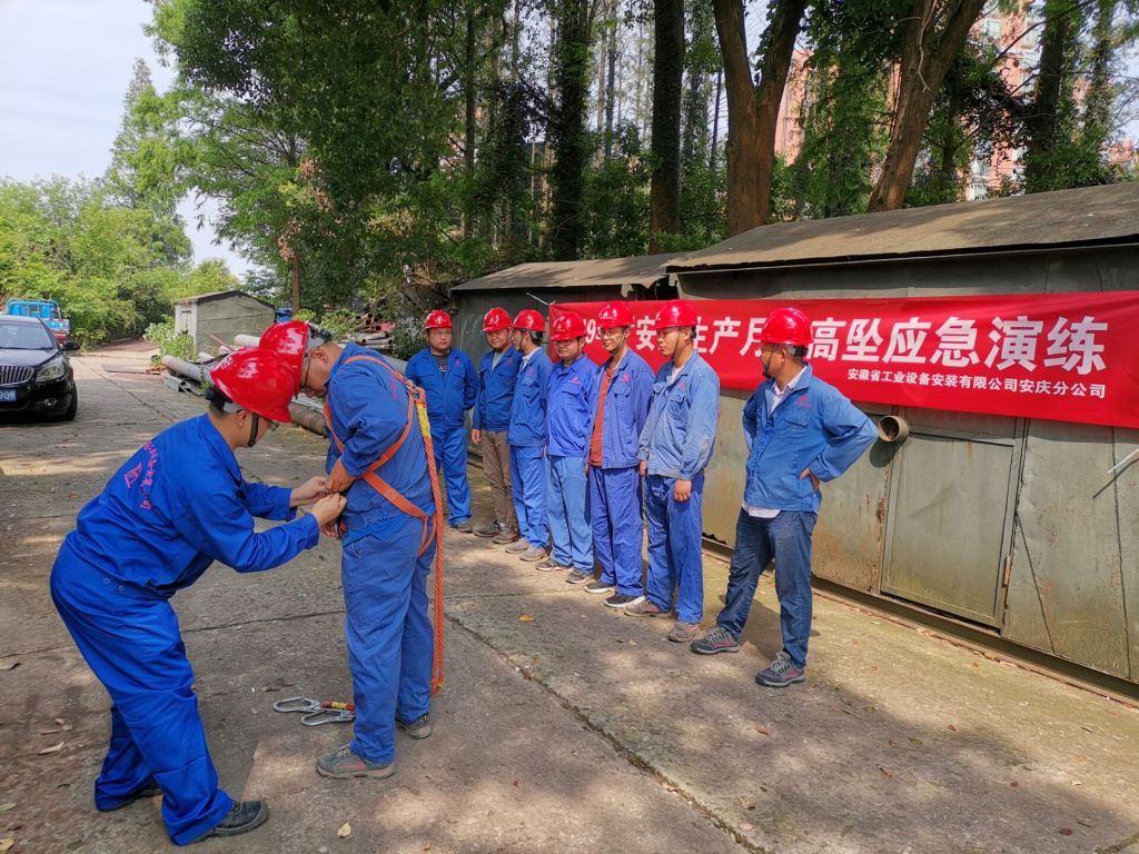 6月28日下午,安慶分公司在安慶石化二氧化碳施工現(xiàn)場開展了高空墜落應(yīng)急救援演練活動,此次演練的是在鋼架吊裝過程中,一名工友因未系安全帶,從高處墜落的模擬場景。分公司項目部員工及現(xiàn)場作業(yè)人員共計20余人參加演練。