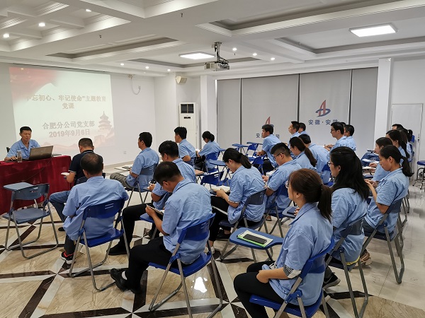 根據(jù)公司黨委“不忘初心、牢記使命”主題教育工作部署,9月6日下午,合肥分公司黨支部召開“不忘初心、牢記使命”主題教育黨課報(bào)告會,黨支部書記胡迎東作了題為《“不忘初心、牢記使命”主題教育成果推動合肥分公司發(fā)展》的黨課報(bào)告。分公司領(lǐng)導(dǎo)班子成員、全體黨員、機(jī)關(guān)工作人員參與會議聽取了報(bào)告。