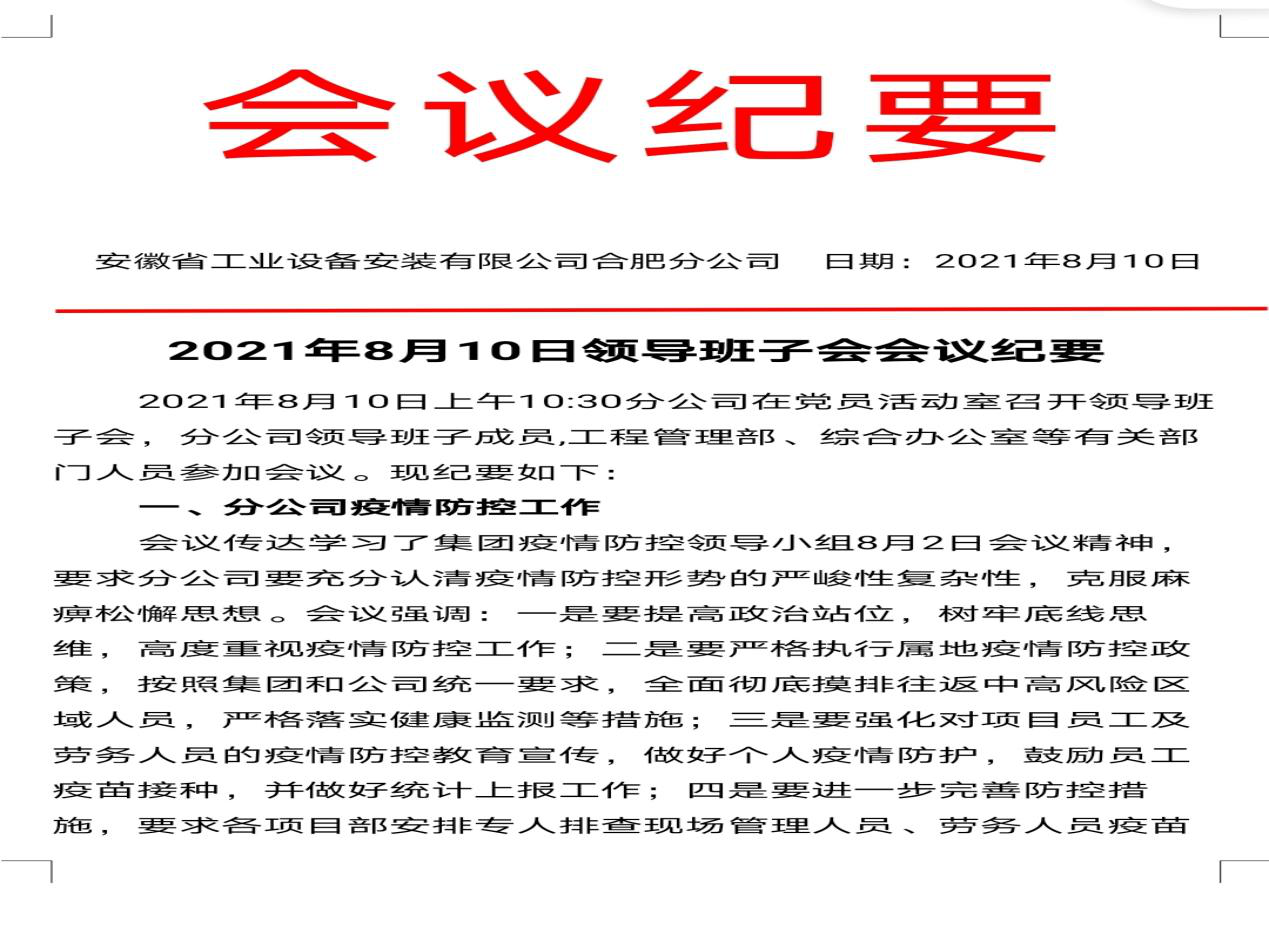 分公司領(lǐng)導(dǎo)班子召開專題會議,傳達(dá)學(xué)習(xí)集團(tuán)、公司有關(guān)會議精神,要求分公司要充分認(rèn)清疫情防控形勢的嚴(yán)峻性復(fù)雜性,克服麻痹松懈思想,樹牢底線思維,嚴(yán)格執(zhí)行各項(xiàng)防控要求,科學(xué)有效做好各項(xiàng)防控工作。