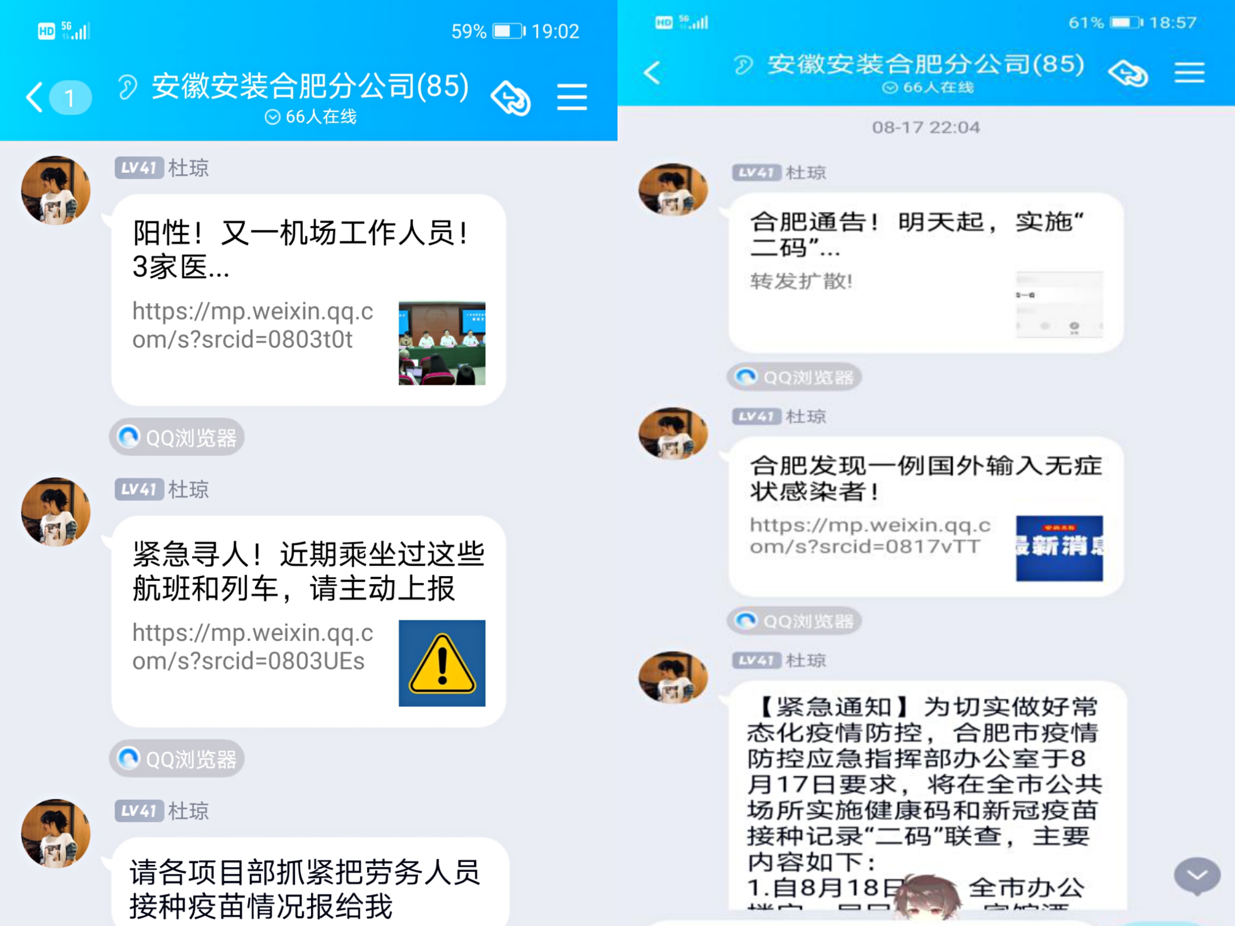 分公司工作群中發(fā)布疫情動態(tài)