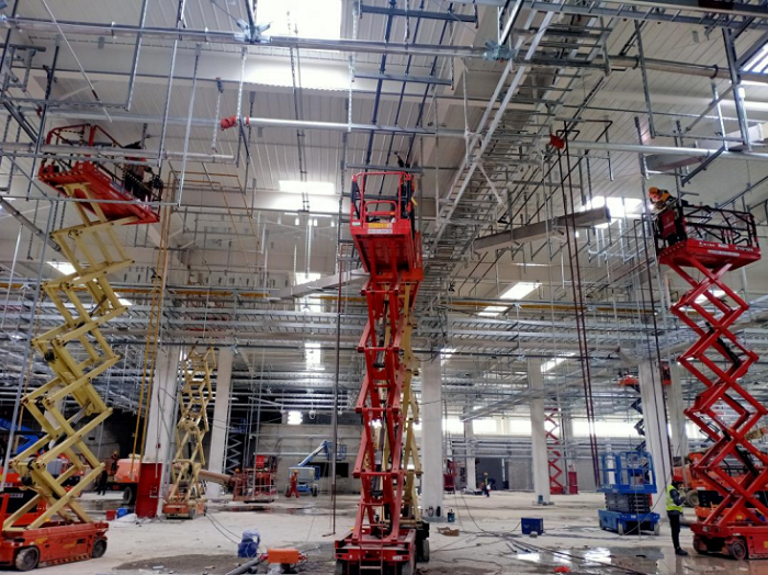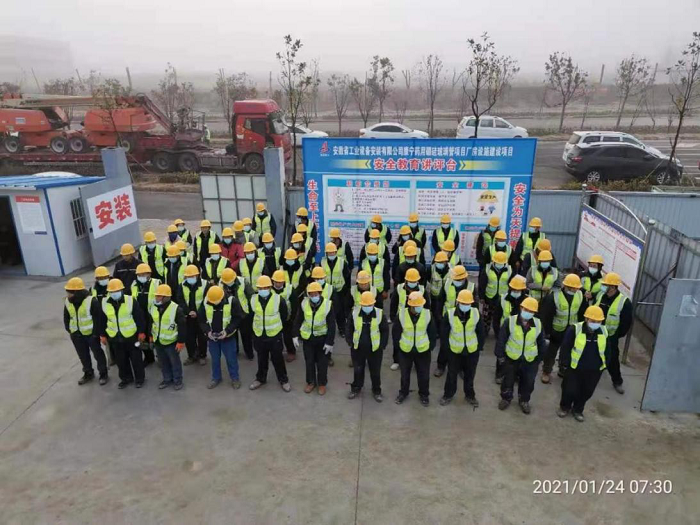 項(xiàng)目部人員進(jìn)場后明確分工,把人員分為三組,一組負(fù)責(zé)編制施工組織設(shè)計(jì),處理設(shè)計(jì)變更,另一組負(fù)責(zé)現(xiàn)場施工,第三組全力做好后勤保障工作。當(dāng)時的情況可以說是火燒眉毛,一方面康寧方要求確保節(jié)點(diǎn)工期,但現(xiàn)場卻存在邊設(shè)計(jì)邊施工邊修改情況,每天發(fā)出的工程聯(lián)系單就多達(dá)近二十份。安裝工程工序繁復(fù),現(xiàn)場又同時與土建、鋼結(jié)構(gòu)大面積交叉施工;另一方面項(xiàng)目部管理人員中有許多人都是首次參與外企項(xiàng)目施工,對外企的技術(shù)和管理要求不適應(yīng)。怎么辦?是臨陣退縮還是迎難而上?面對這種情況,分公司黨支部以黨史學(xué)習(xí)教育為契機(jī),開展黨員公開承諾踐諾、黨員示范崗活動,號召黨員發(fā)揮先鋒模范作用,工會相繼開展了“大干120天,確保完成施工任務(wù)”,“學(xué)黨史、保安康、 工期、沖千億,大干60天,確保完成目標(biāo)任務(wù)”勞動競賽活動,向全體參戰(zhàn)人員發(fā)出了競賽倡議書,通過勞動競賽統(tǒng)一思想,鼓舞士氣,項(xiàng)目部人員吃、住、辦公在工地,加班加點(diǎn),早已成家常便飯。幾乎每一名管理人員都是白天看現(xiàn)場,晚上參加項(xiàng)目現(xiàn)場推進(jìn)會,細(xì)細(xì)梳理每一道工序、每一個施工節(jié)點(diǎn),制定詳細(xì)實(shí)施計(jì)劃,大家只有一個信念,一定要確保如期完工,展示安徽安裝良好的形象。
