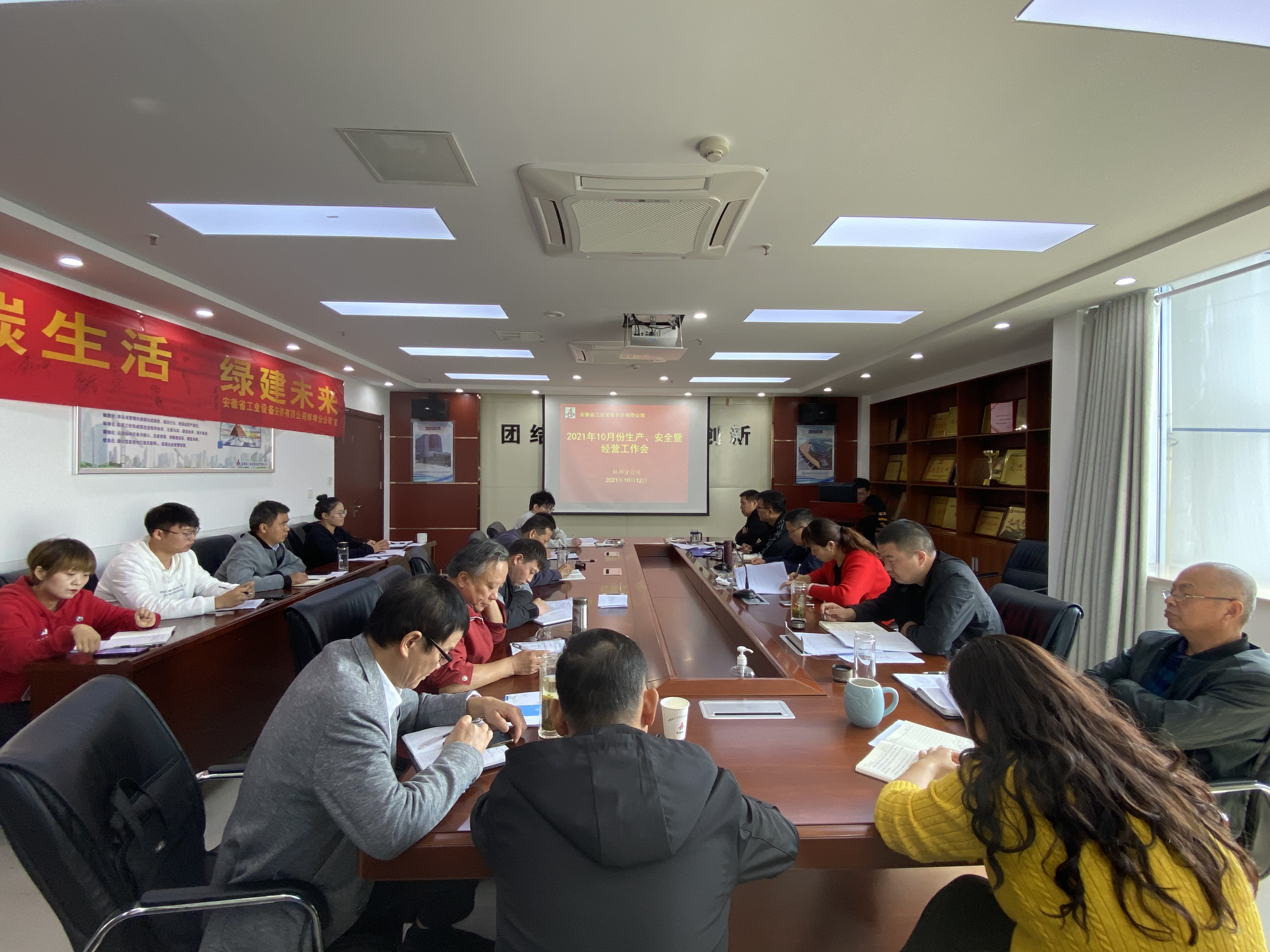 10月12日上午,蚌埠分公司組織召開10月份生產(chǎn)、安全暨經(jīng)營(yíng)工作會(huì)議,分公司領(lǐng)導(dǎo)班子成員、部門負(fù)責(zé)人、各在建項(xiàng)目經(jīng)理及工程管理部全體員工參會(huì)。