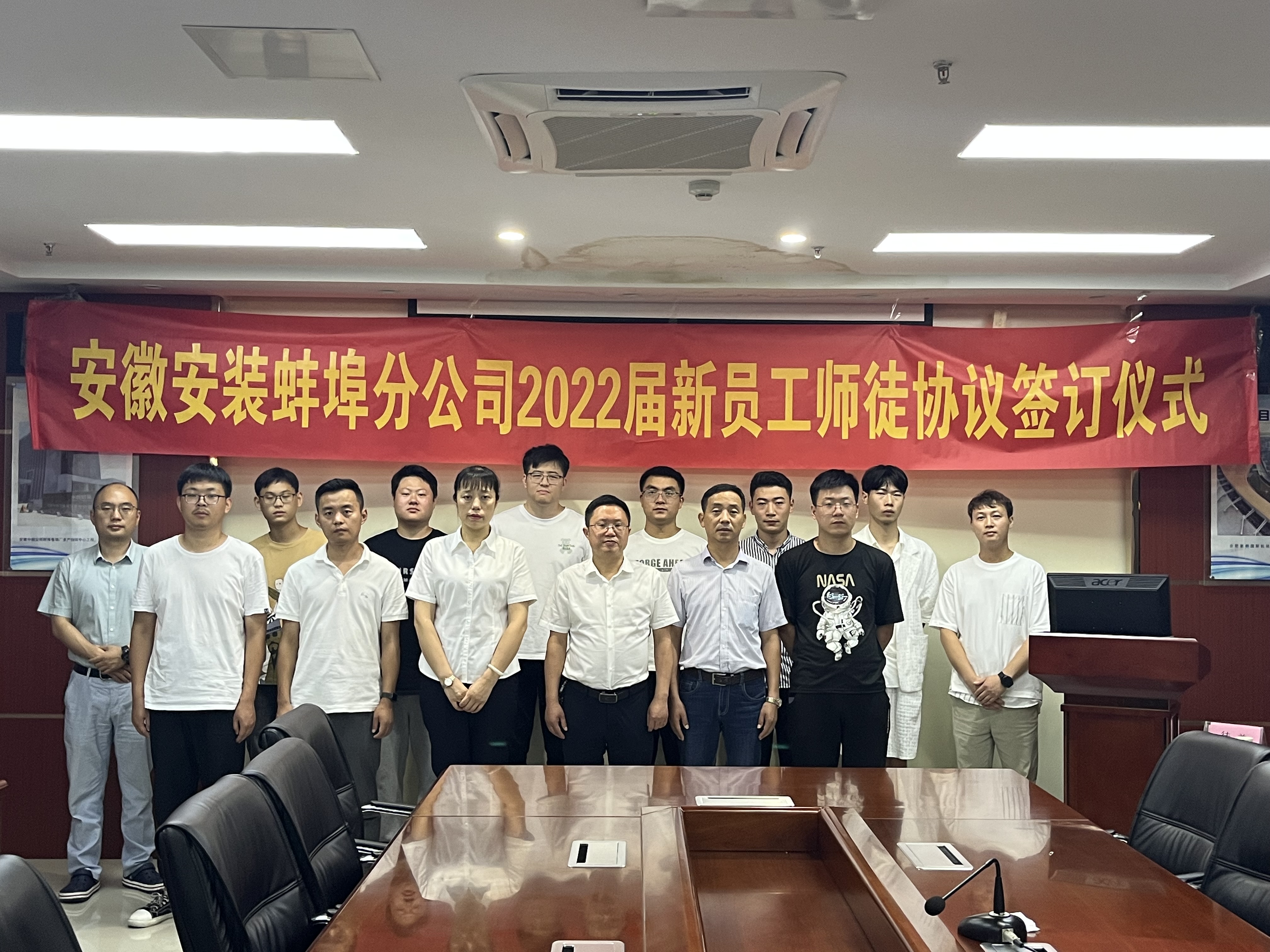 為使新員工盡快成長成才,加速人才培養(yǎng),加強(qiáng)分公司人才梯隊(duì)建設(shè)。7月15日下午,蚌埠分公司黨支部舉行了“2022屆新員工師徒結(jié)對”簽訂儀式。分公司黨政主要領(lǐng)導(dǎo)、部門負(fù)責(zé)人、項(xiàng)目經(jīng)理、六對結(jié)對師徒參加了此次會議。