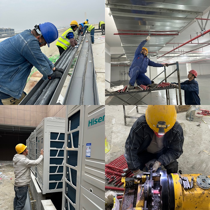 2月11日,按照計劃安排,項目部需要將80臺空調外機吊運至樓頂平臺,該項目樓頂高度雖然只有25米,但是由于項目以進入安裝階段,現(xiàn)場塔吊及人貨電梯早已拆除,加之室外又在進行地面道路施工,吊車靠不上去,吊運就變得異常困難。項目部經過勘察工程周邊施工環(huán)境,精準測量吊裝距離,制定了嚴格的設備吊裝專項施工方案,采用200T吊車進行吊裝作業(yè)。在設備吊裝過程中,項目部嚴格做好作業(yè)人員安全技術交底,拉好作業(yè)警戒線,樓下樓上合理安排人員進行安全監(jiān)督,通過近14小時的連續(xù)作業(yè),終于在夜里9點多鐘完成全部設備的吊運任務。